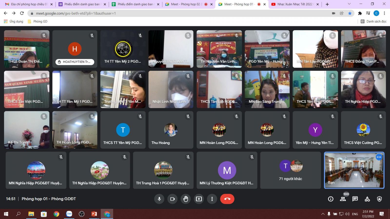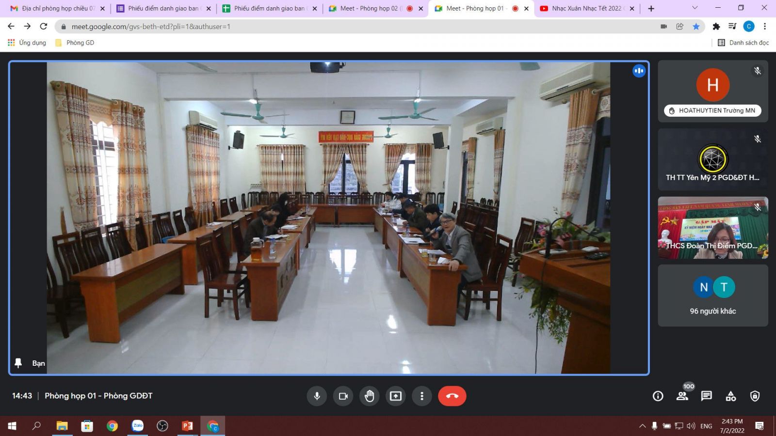 Thực hiện Công văn 252/UBND-KGVX ngày 28/01/2022 của UBND tỉnh Hưng Yên về việc tổ chức dạy học trực tiếp tại các cơ sở giáo dục; Kế hoạch số 182/KH-SGDĐT ngày 28/01/2022 của Sở GD&ĐT Hưng Yên về việc Tổ chức dạy học trực tiêp sau thời gian tạm dừng đến trường để phòng, chống dịch Covid-19. Nhằm đánh giá công tác thực hiện nhiệm vụ năm học 2021 - 2022 an toàn, bảo đảm chương trình và mục tiêu chất lượng giáo dục ứng phó với đại dịch COVID-19 theo đúng chỉ đạo của Thủ tướng Chính phủ, Bộ Giáo dục và Đào tạo (GDĐT) và UBND Tỉnh; giúp trẻ được trở lại trường học trực tiếp sau thời gian phòng chống COVID-19 không tập trung đến trường; ngày 07, 08 tháng 02 năm 2022, Phòng GD&ĐT và Sở GD&ĐT tổ chức Hội nghị trực tuyến chuẩn bị các điều kiện tổ chức cho học sinh đi học trực tiếp tại các cơ sở giáo dục.