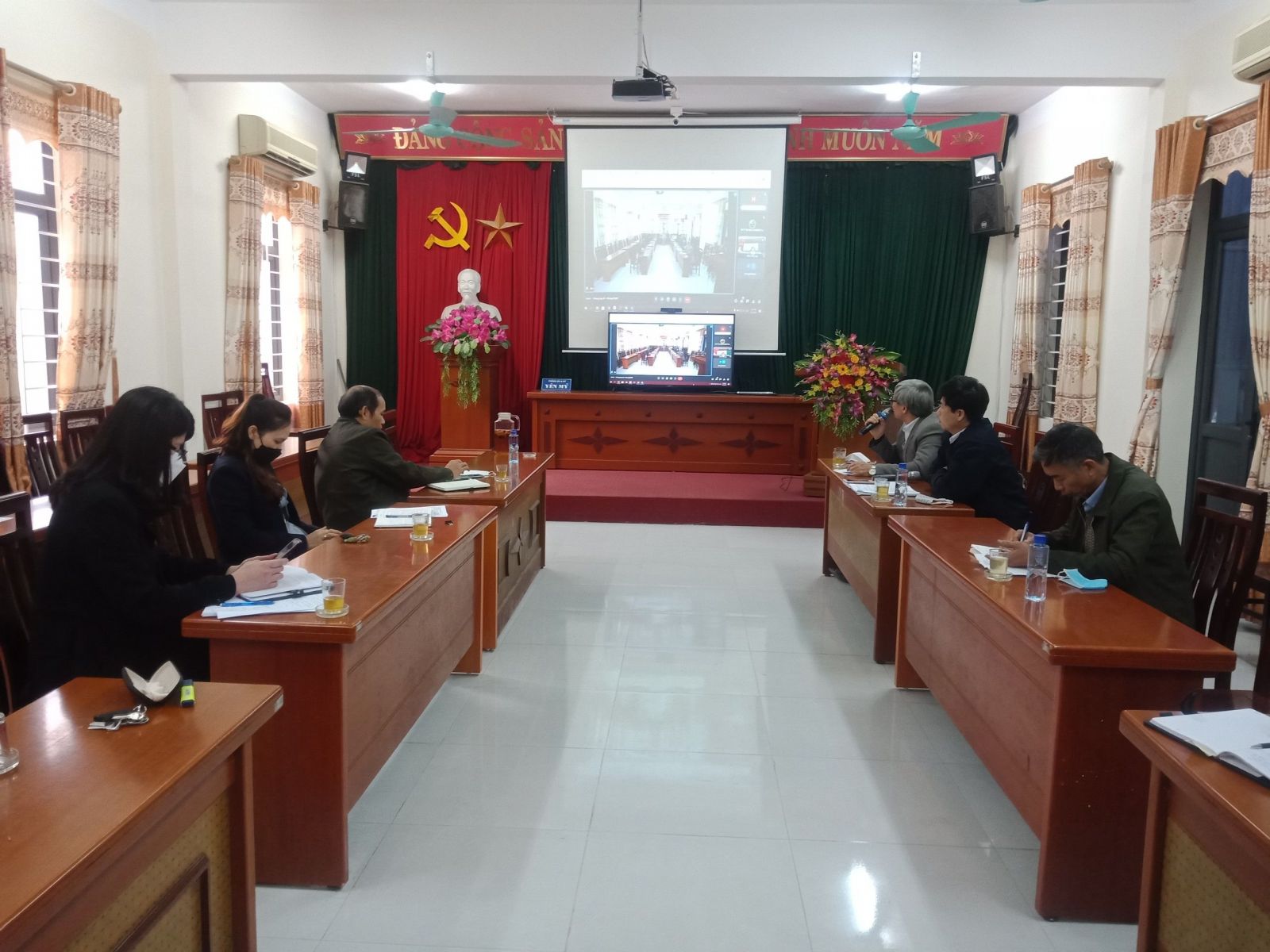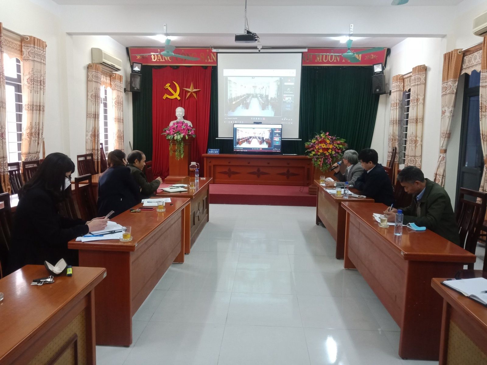 Một số hình ảnh của hội nghị ngày 07 và 08 tháng 02 năm 2022 tại Hội trường PGD&ĐT Yên Mỹ: