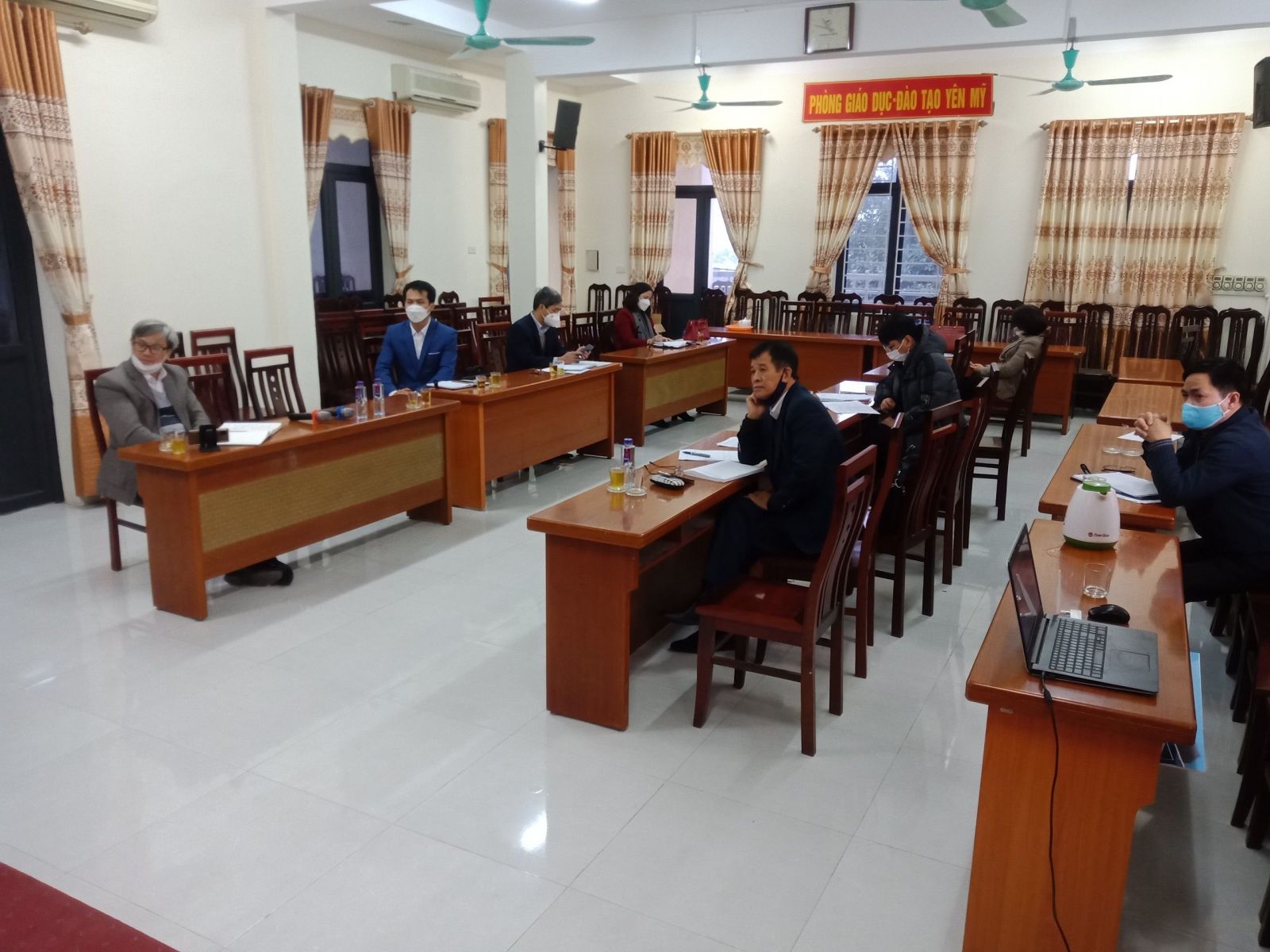Nhằm chuẩn bị các điều kiện về cơ sở vật chất và các phương án để tổ chức dạy học trực tiếp đảm bảo an toàn, phòng, chống dịch Covid-19 tại các cơ sở giáo dục từ ngày 14/2/2022, Phòng GD&ĐT Yên Mỹ và Sở GD&ĐT Hưng Yên tổ chức Hội nghị trực tuyến ngày 07 và 08 tháng 02 năm 2022.