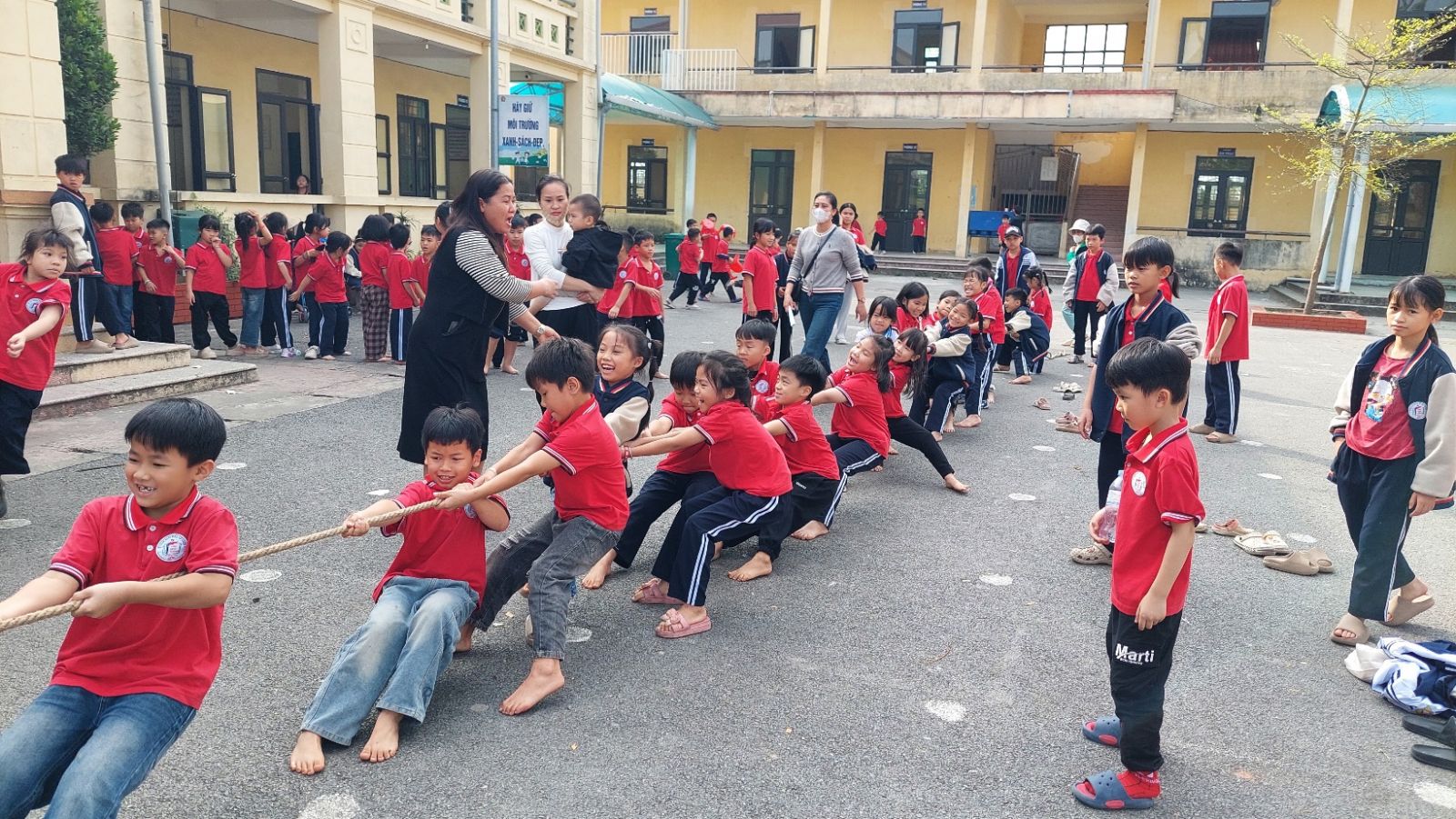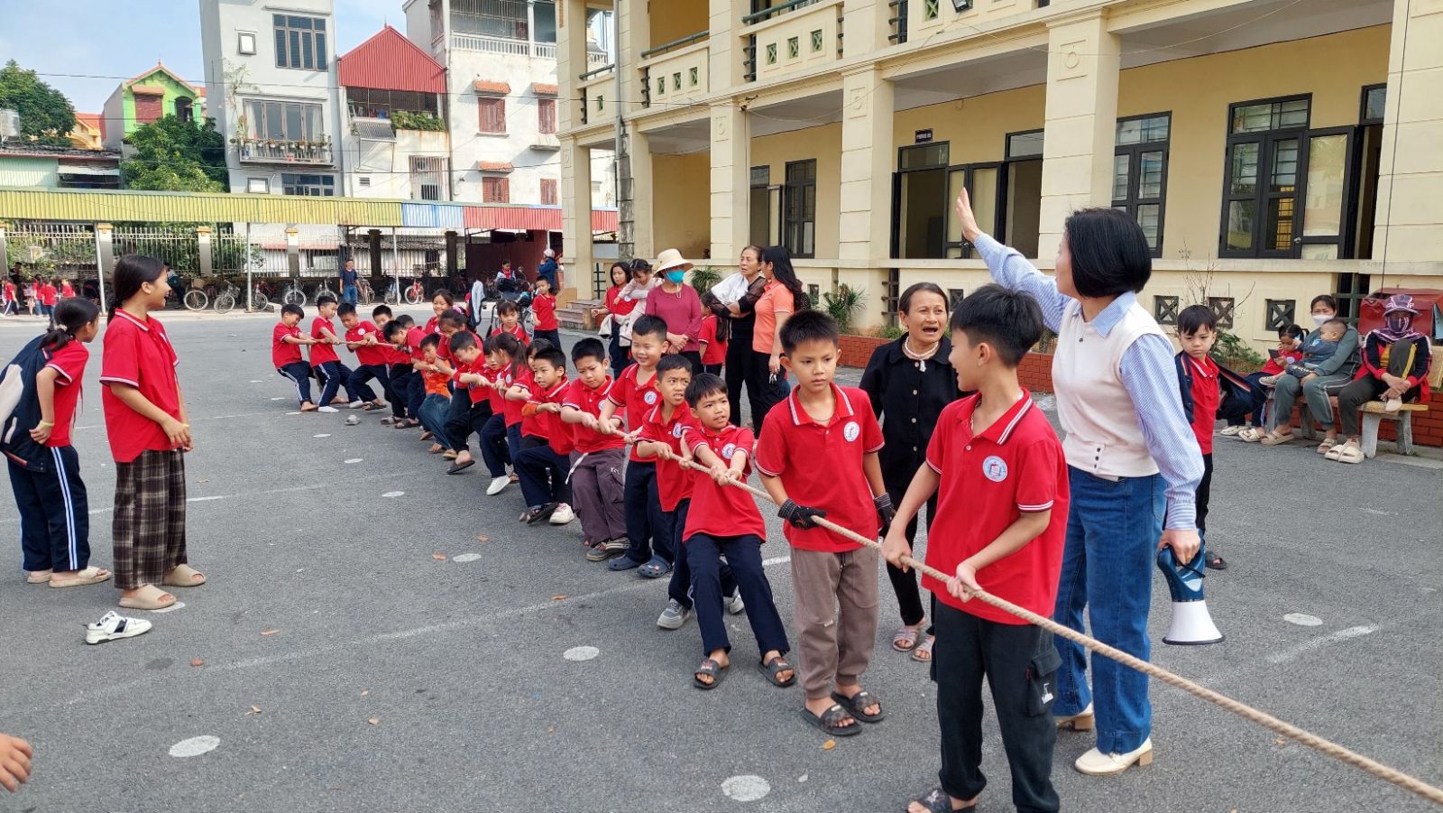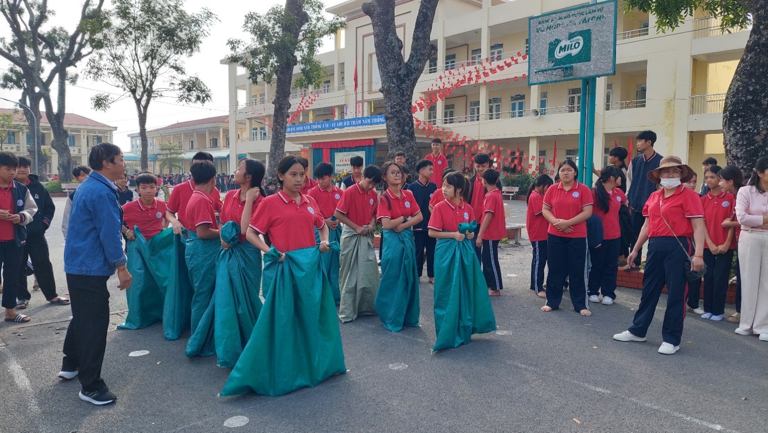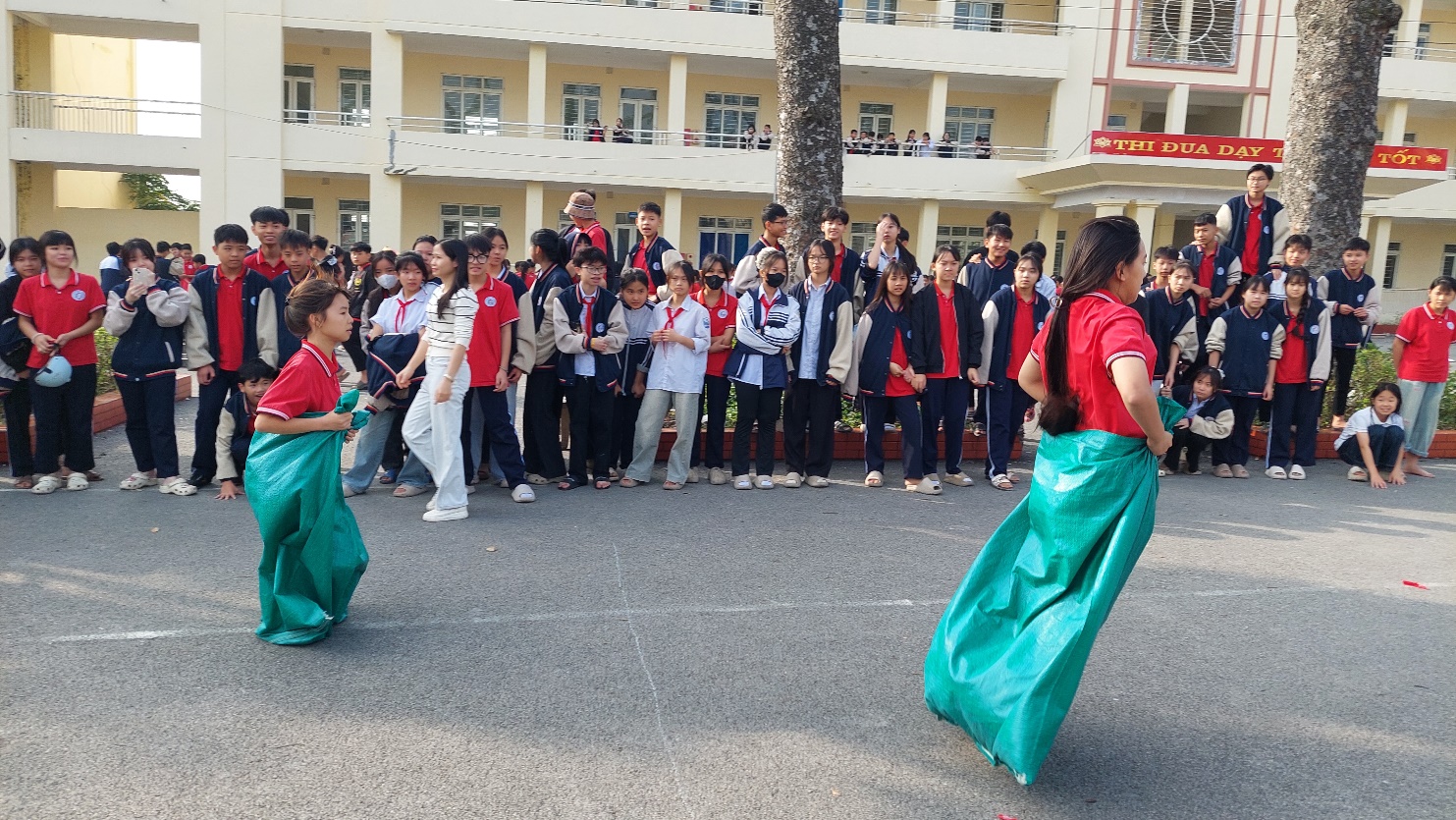 Tiếp sau đó là phần hội thi kéo co – nhảy bao bố của HS các khối lớp, đây cũng là hoạt động giúp các em rèn luyện sức khỏe để học tập và bảo về Tổ quốc. Hoạt động đã thu hút các em tham gia sôi nổi và hào hứng mang lại nhiều niềm vui cho thầy và trò nhà trường.