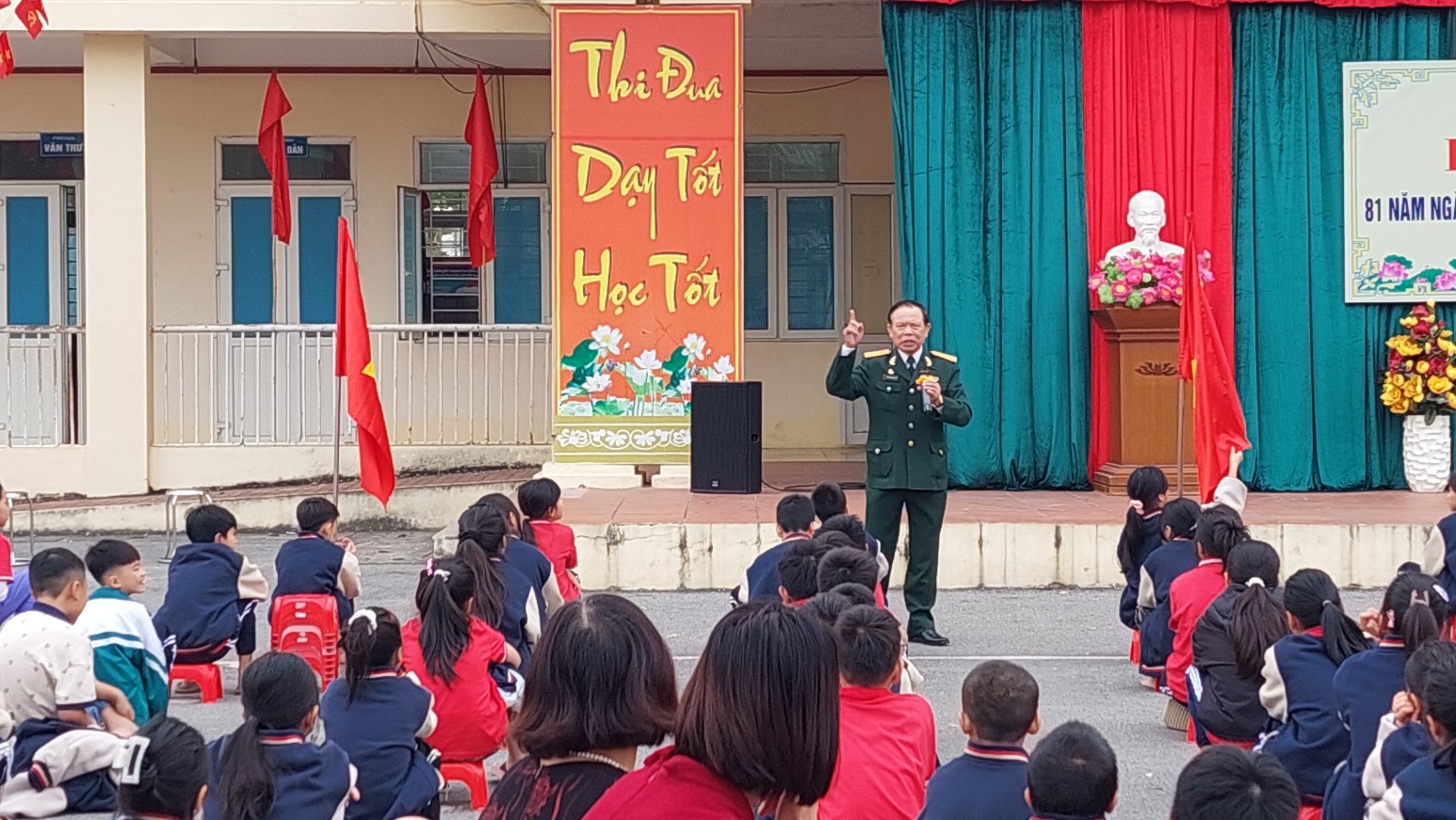 Trong không khí thiêng liêng ấy, thầy và trò trường TH và THCS Lý Thường Kiệt vinh dự được đón tiếp đồng chí Nguyễn Quang Minh - cựu chiến sĩ trở về thăm trường và chia sẻ những câu chuyện chân thực về những năm tháng rèn luyện, chiến đấu trong quân ngũ.