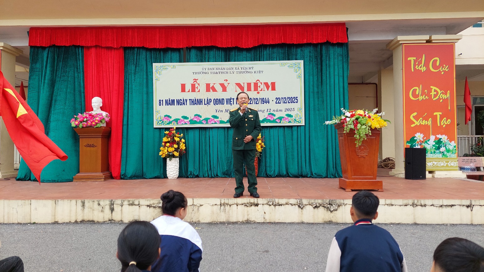 *Nhân dịp kỷ niệm 81 năm ngày thành lập Quân đội nhân dân Việt Nam (22/12/1944 – 22/12/2025) thầy và trò trường TH và THCS Lý Thường Kiệt đã tổ chức thắp hương tri ân các anh hùng liệt sĩ tại nghĩa trang liệt sỹ Lý Thường Kiệt. Đây là hoạt động giáo dục các em học sinh lòng biết ơn và bày tỏ sự thành kính tưởng nhớ các Anh hùng liệt sĩ - những người con trung kiên, dũng cảm của mảnh đất Yên Mỹ đã chiến đấu hy sinh, cống hiến trọn đời mình cho sự nghiệp cách mạng vẻ vang của dân tộc ta, đã ngã xuống vì tự do của dân tộc.