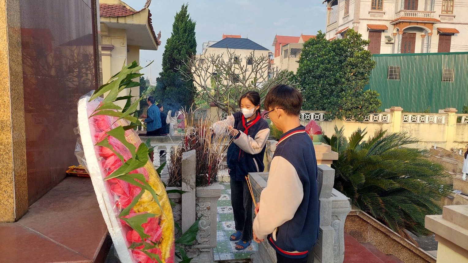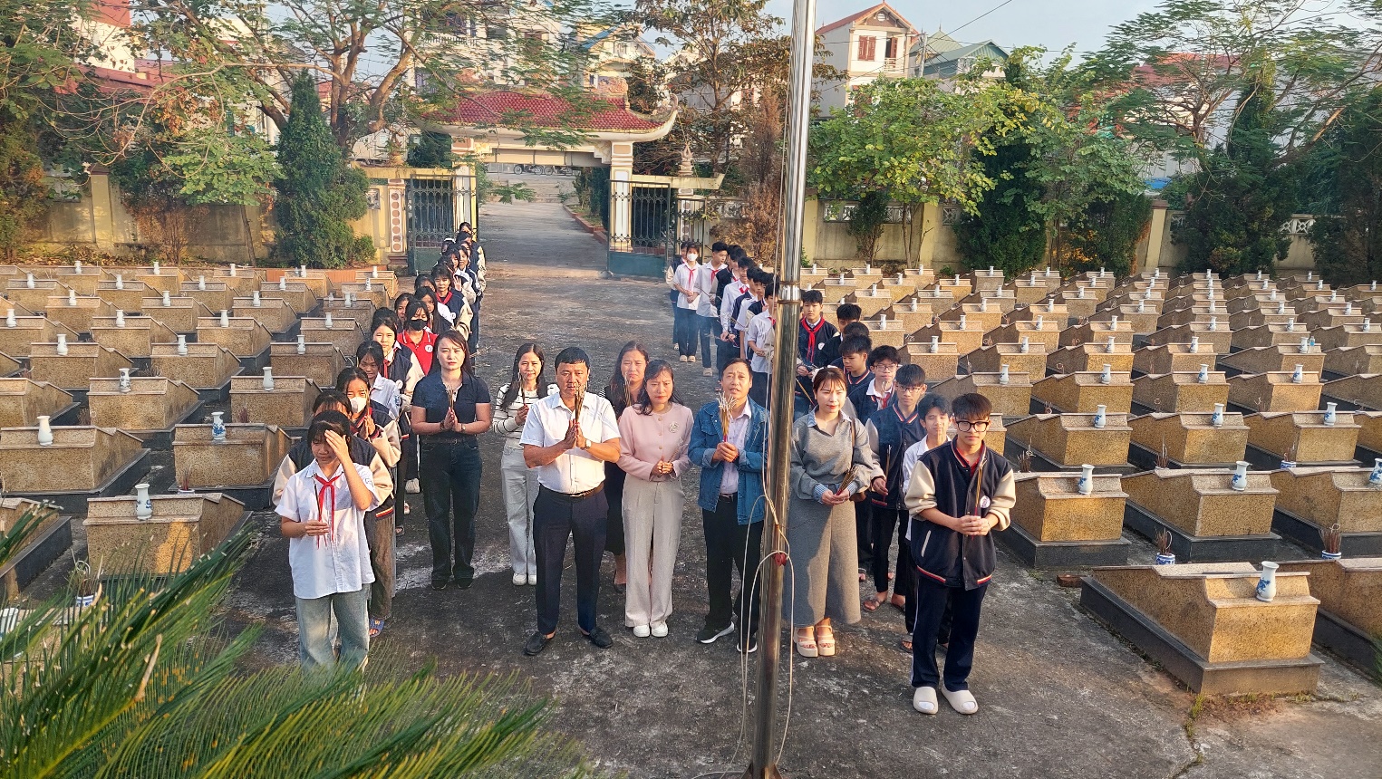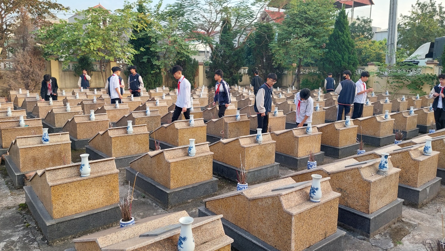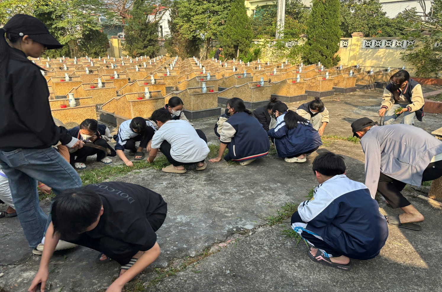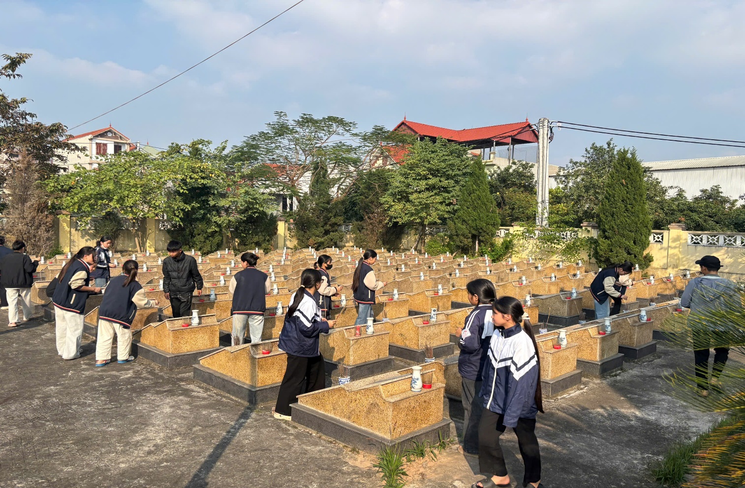 *Trước đó ngày 19/12 nhà trường đã phối hợp với liên đội trường TH và THCS Lý Thường Kiệt đã cử một nhóm học sinh đến quét dọn vệ sinh nghĩa trang sạch sẽ . Đây cũng là hoạt động thường niên, qua đó giúp các em học sinh hiểu rõ hơn về lịch sử dân tộc, bồi đắp lòng yêu nước, ý thức trách nhiệm và quyết tâm rèn luyện, học tập tốt để xứng đáng với sự hy sinh cao cả của các thế hệ đi trước.