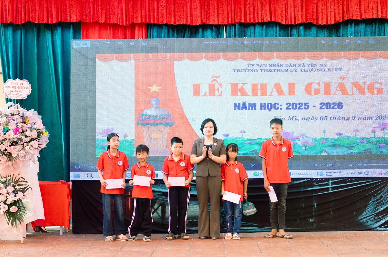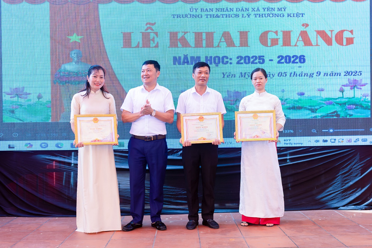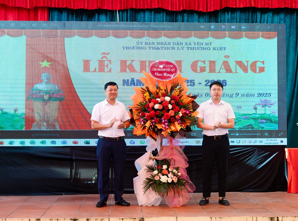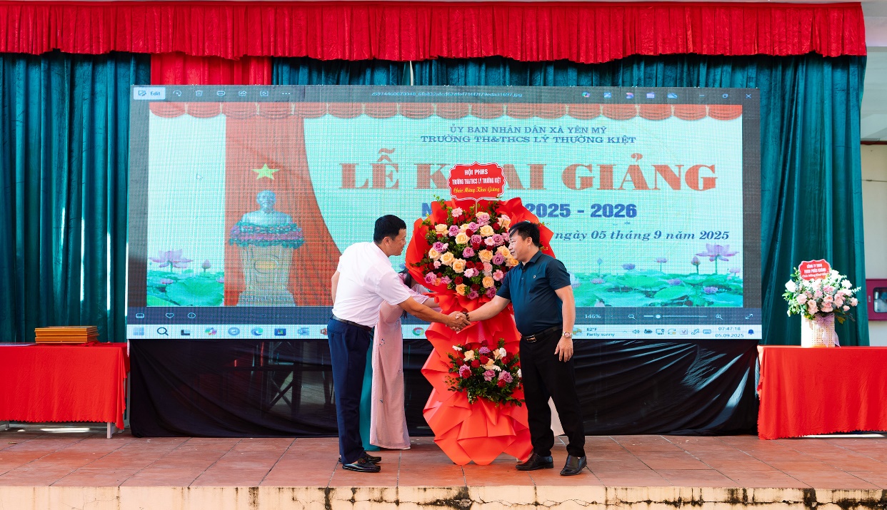 Buổi lễ diễn ra trong không khí trang trọng và ấm áp. Nhà trường vinh dự được đón tiếp sự hiện diện của Đảng ủy, UBND xã Yên Mỹ, Hội cha mẹ học sinh, cùng đại diện các doanh nghiệp trên điạ bàn tỉnh đã đến chúc mừng, tặng hoa, thể hiện sự quan tâm sâu sắc tới sự nghiệp trồng người.