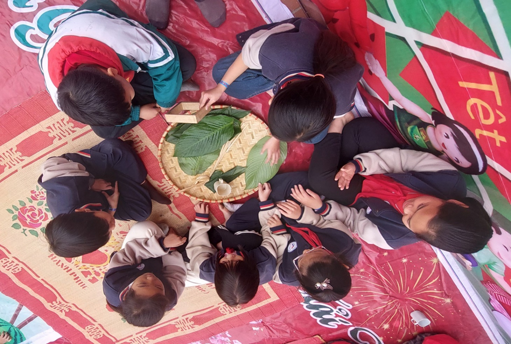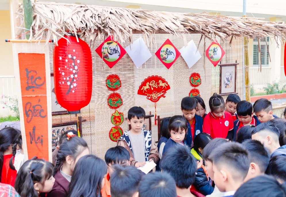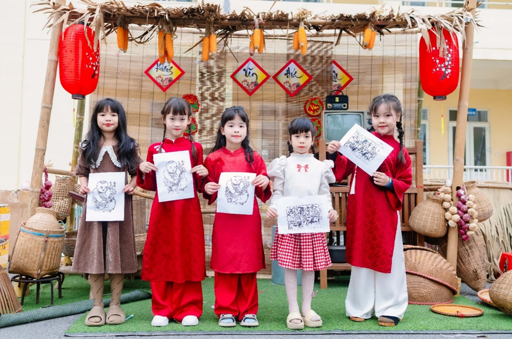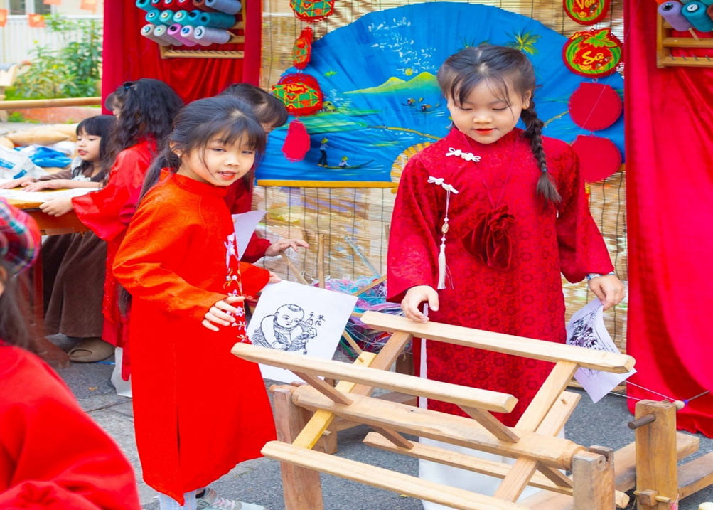 Với mong muốn giúp các em học sinh hiểu Tết, yêu Tết và trân trọng Tết cổ truyền, nhà trường đã phối hợp tổ chức chương trình như một lễ hội dân gian thu nhỏ. Tại đây, các em không chỉ được nghe kể về Tết mà còn được tự tay gói bánh chưng, viết thư pháp, làm tranh dân gian Đông Hồ, làm thiệp chúc Tết, được hòa mình vào không khí nhộn nhịp của phiên chợ quê và tham gia những trò chơi dân gian đầy ắp tiếng cười.