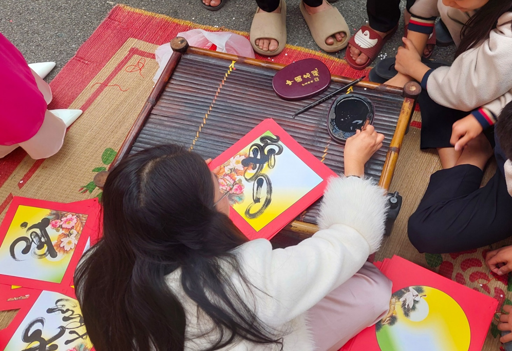 HS hứng thú với trải nghiệm xin chữ thư pháp