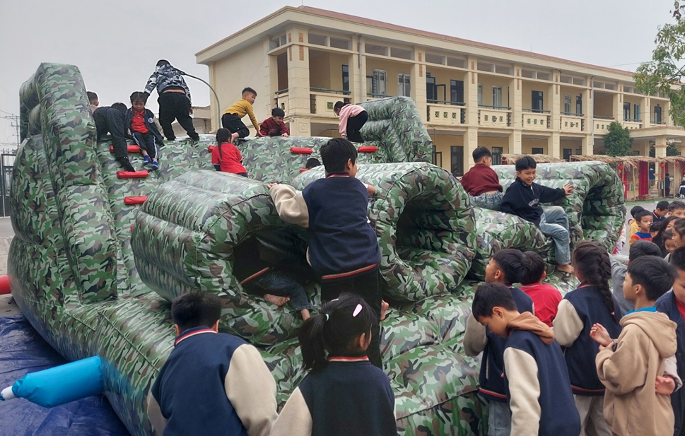 HS khám phá nhà hơi như một công viên giải trí thu nhỏ