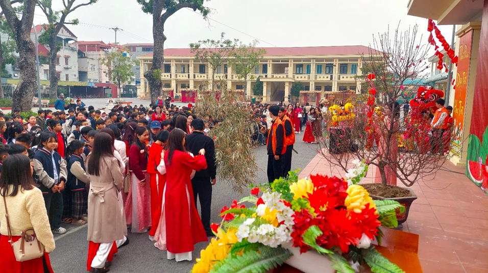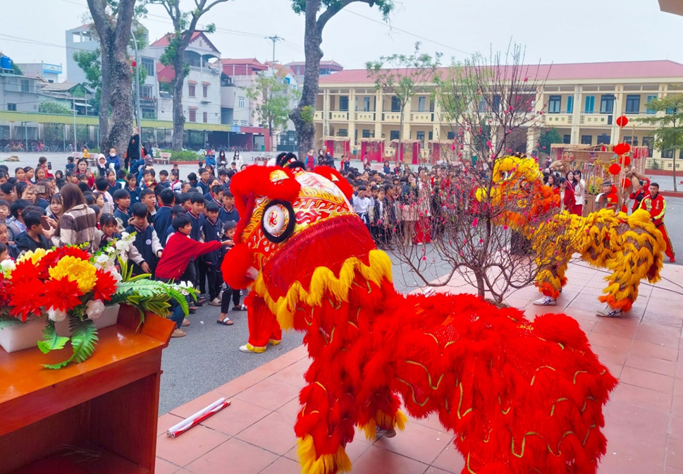 Trong không khí rộn ràng của những ngày cuối năm, khi mùa xuân Bính Ngọ đang gõ cửa khắp mọi nhà, cành mai đã nở, cành đào đã thắm, ngày 3/2/2026, Trường TH&THCS Lý Thường Kiệt long trọng tổ chức chương trình trải nghiệm văn hoá dân gian “Tết cổ truyền”. Đây không chỉ là một hoạt động ý nghĩa được triển khai theo kế hoạch giáo dục năm học 2025-2026 mà còn là một ngày hội văn hoá, nơi thầy và trò cùng nhau sống lại không khí Tết xưa - giản dị mà thân thương, mộc mạc mà đong đầy yêu thương.